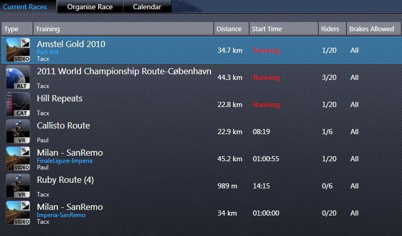 - Multiplayer allows you to race against real opponents, anywhere in the world, thanks to the internet or a local network. In Virtual Reality this can be done with 5 opponents, with the other training types it is possible with up to 19 opponents. With the upgrade to version 3.6, you can only join races created by TacX servers. No longer can you create your own races. I don’t really mind since I lack the confidence to join such races 🙂